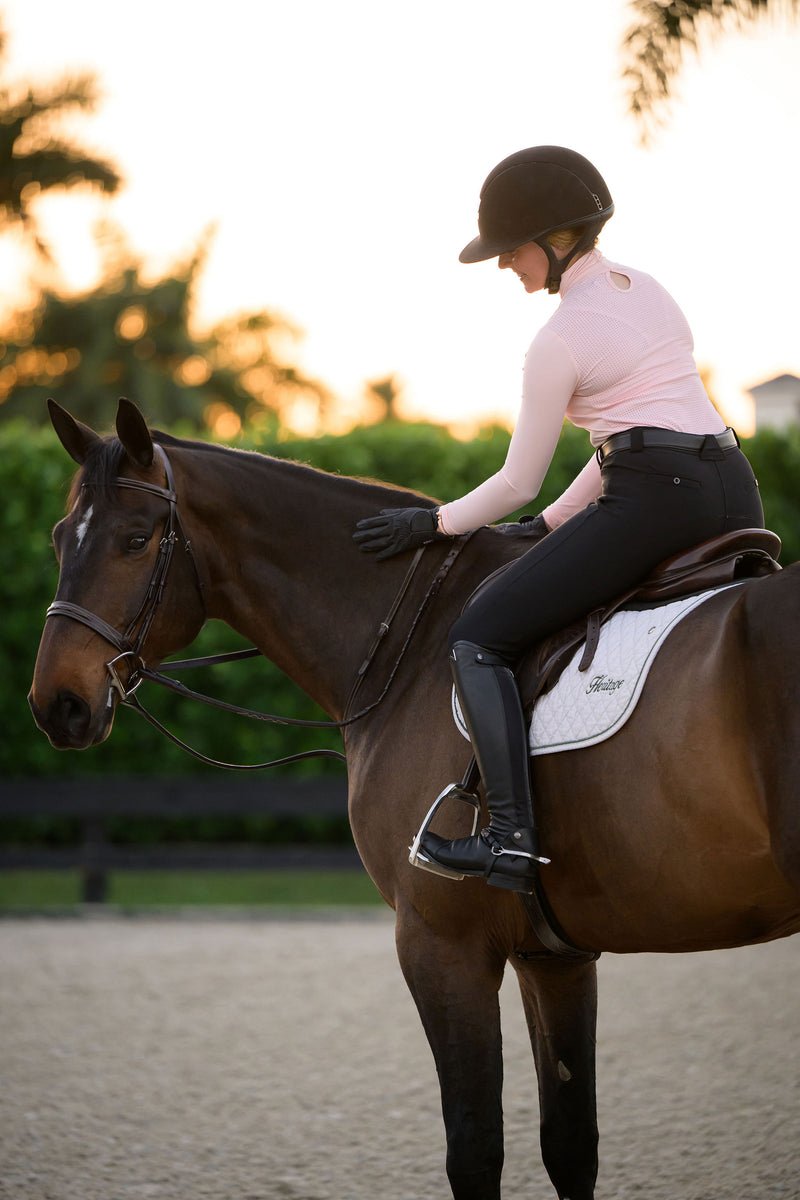 Founded by a lifelong rider, our collections are crafted to deliver performance, comfort, and timeless style—both in and out of the ring. We use premium technical fabrics, elegant silhouettes, and thoughtful details to create apparel that moves with you and stands out for all the right reasons. Woman-owned. Rider-designed. Made to make you feel as good as you look.