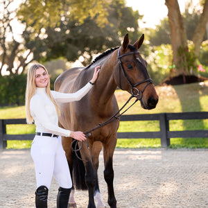 Designed with a sleeker, tighter turtleneck silhouette, Aspen provides ultimate neck protection while maintaining an effortless, polished look. Quick-drying and lightweight, it’s perfect for schooling, travel, and long days in the saddle.