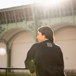 - Embroidered flag motif