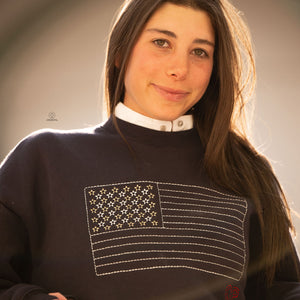 Crafted in a ultra comfy fleece, the Clara Prop Crewneck features a refined take on classic American iconography—reimagined through a clean, equestrian lens. The embroidered flag detail adds subtle texture and dimension, while the tailored silhouette layers seamlessly over a show shirt for a polished, off-duty look.